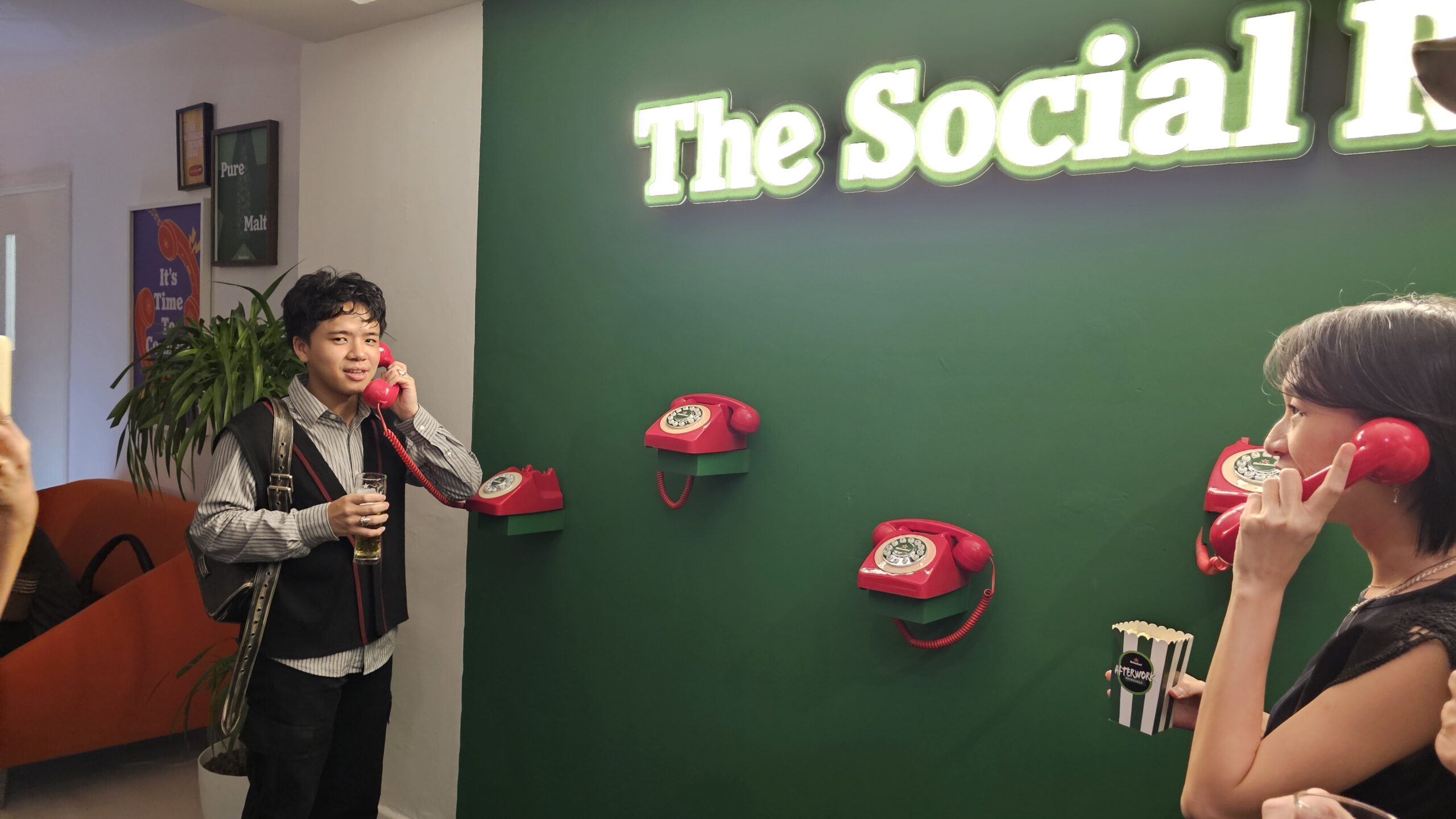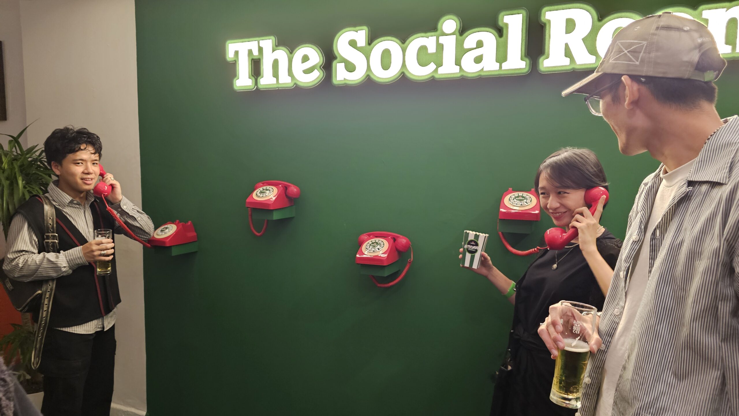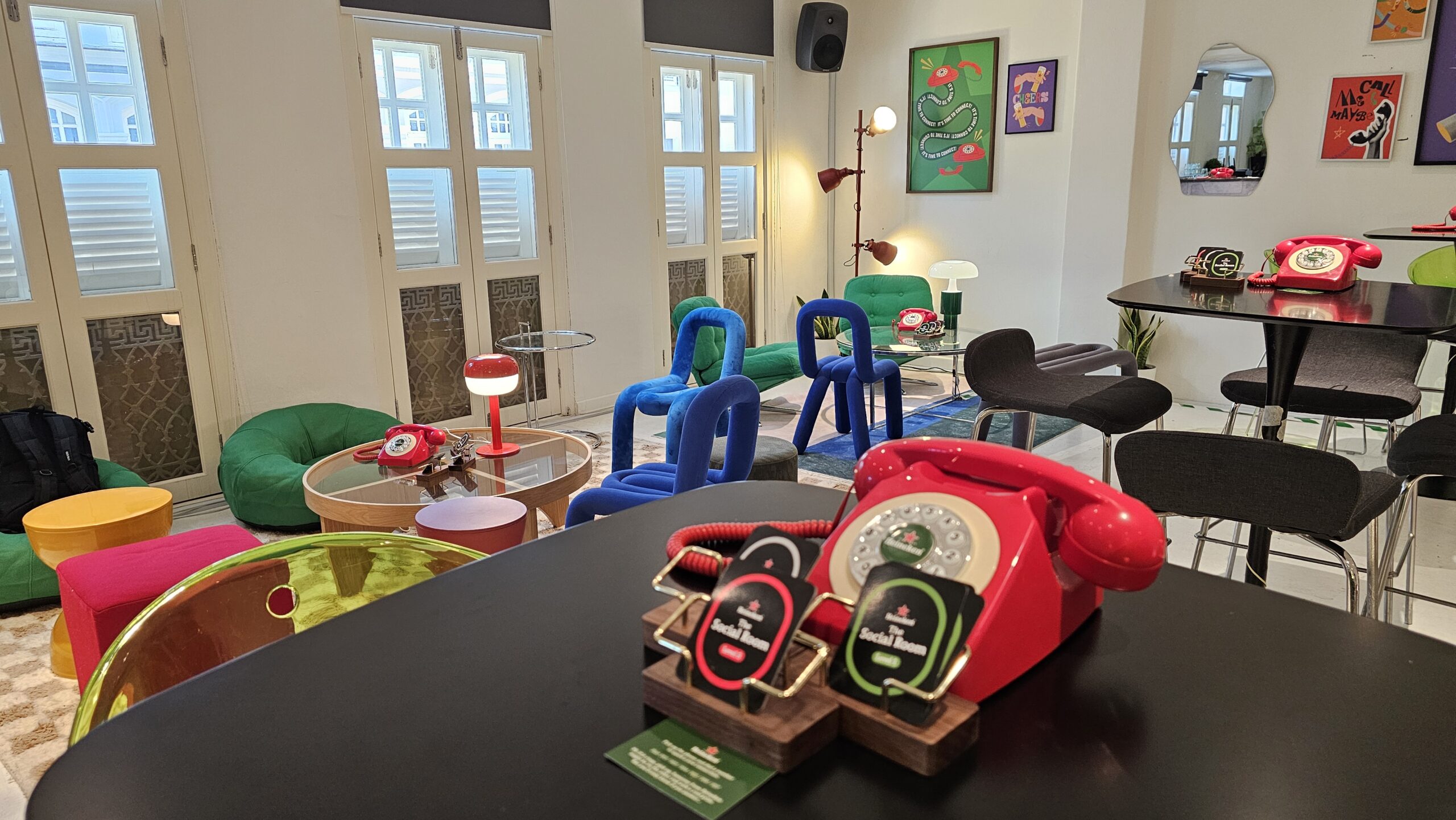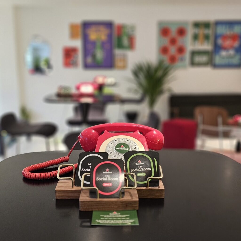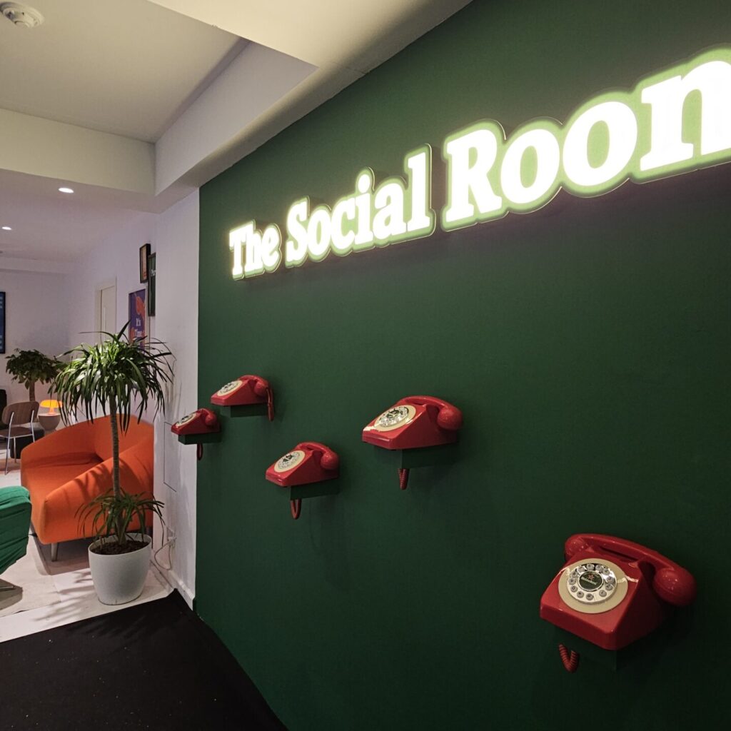 The social room features a different kind of connection. No apps, nos swiping, Just a phone for you to pick up, dial a stranger and have a real conversation.