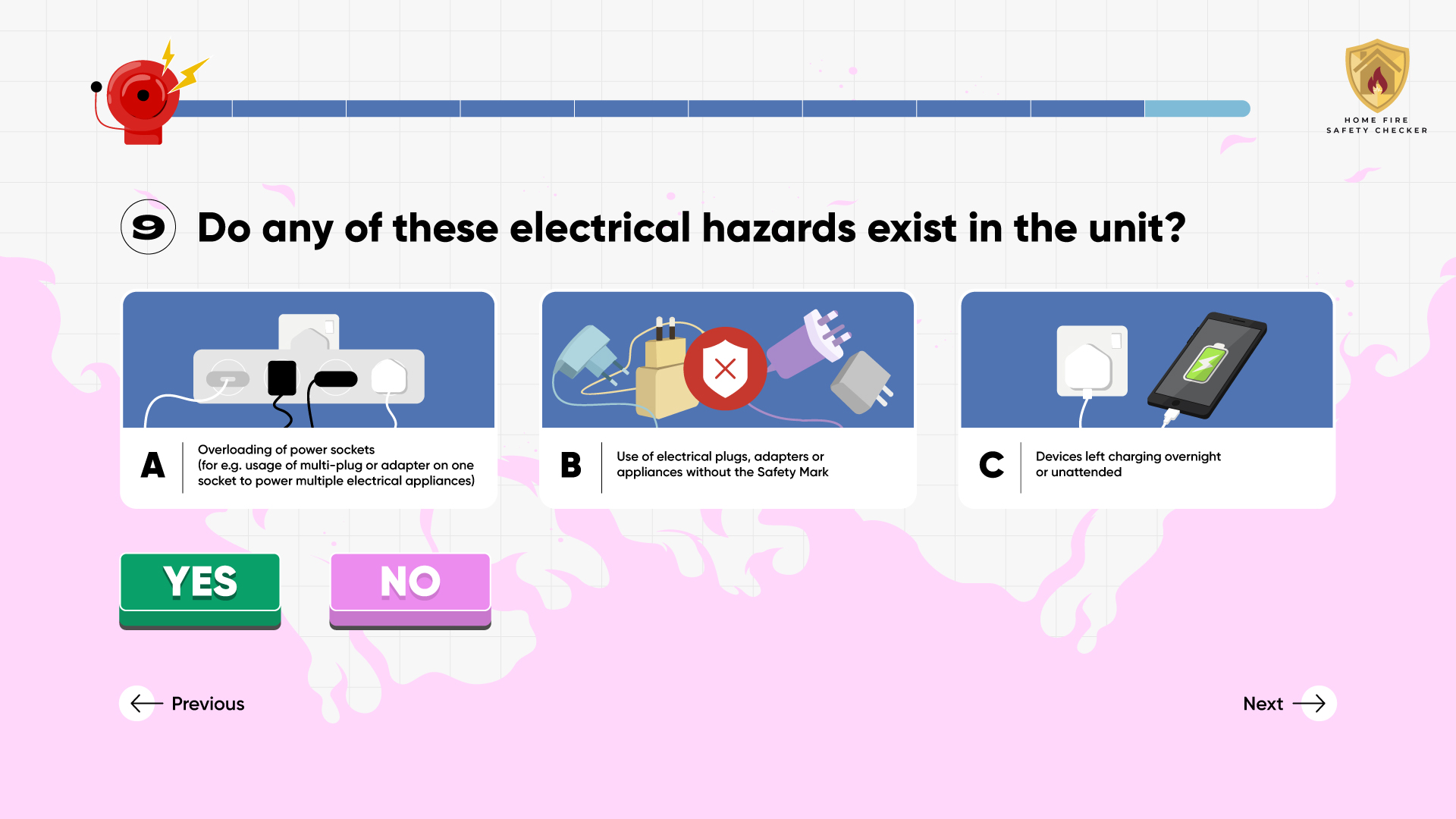 Identifying potential risks early and taking preventive measures can greatly reduce the chances of fire incidents. Through a short assessment of 10 targeted questions, you’ll be able to uncover common hazards in your home. Based on your responses, the tool provides personalised recommendations to help mitigate these risks, along with practical steps you can take to safeguard your household.